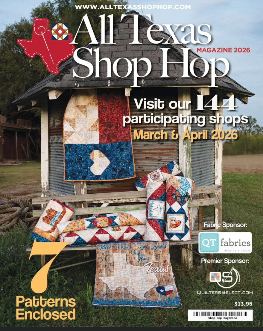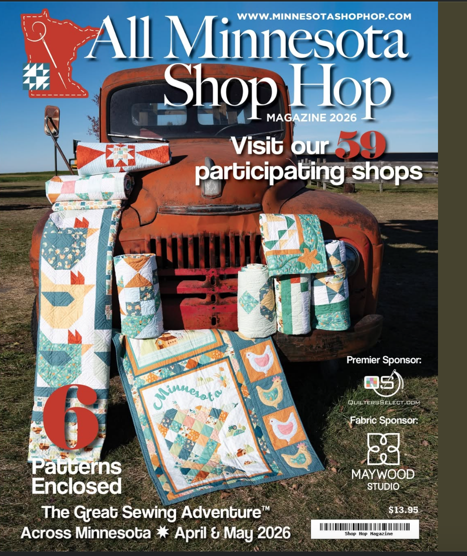 I am honored to be selected as a designer for Shop Hop Inc for multiple events in 2026. Find one of my quilt patterns in each of the publications below. Click the magazine cover to link to a the page to find out how to purchase a magazine.